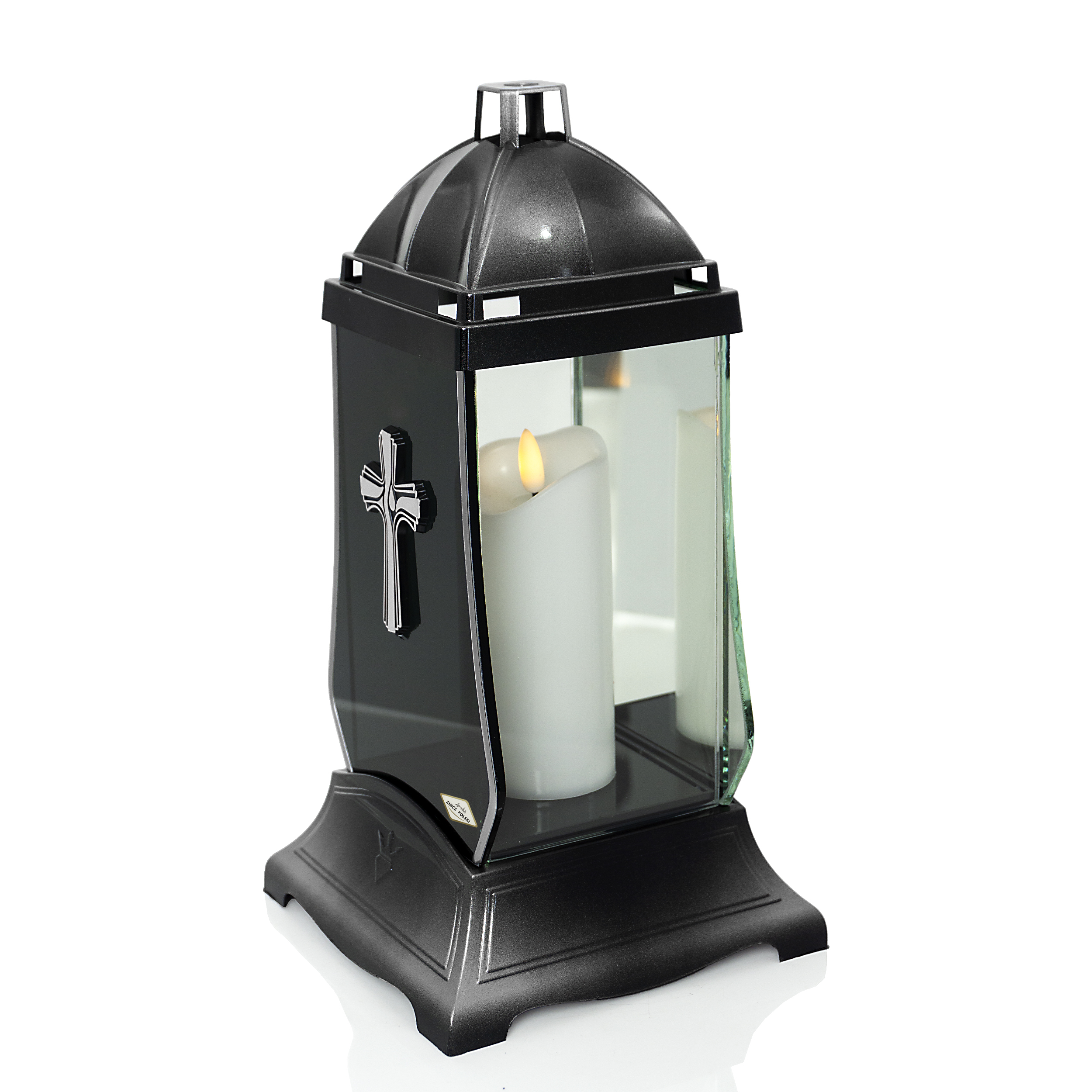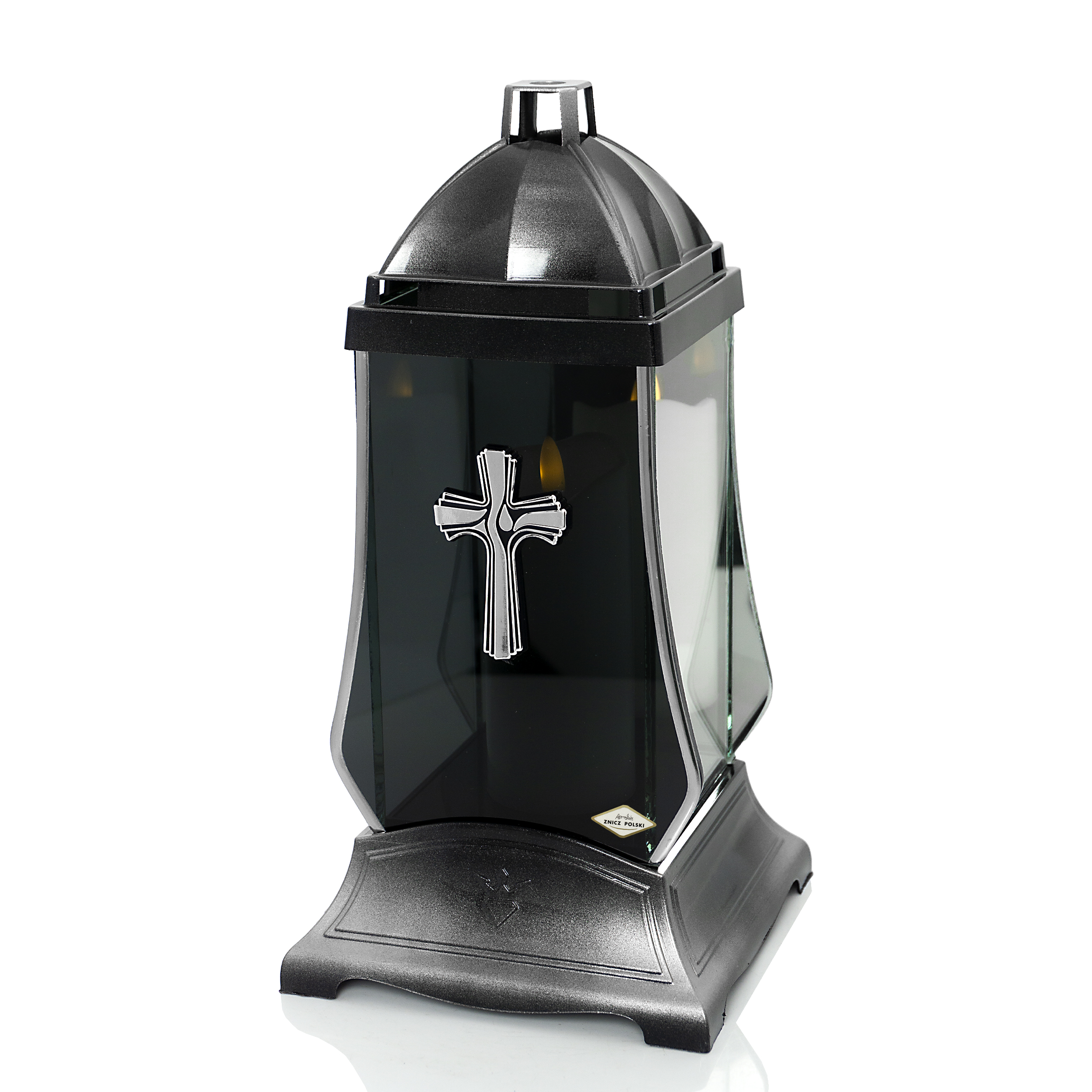 Elegancki znicz nagrobny z dymioną przednią szybką i lustrem