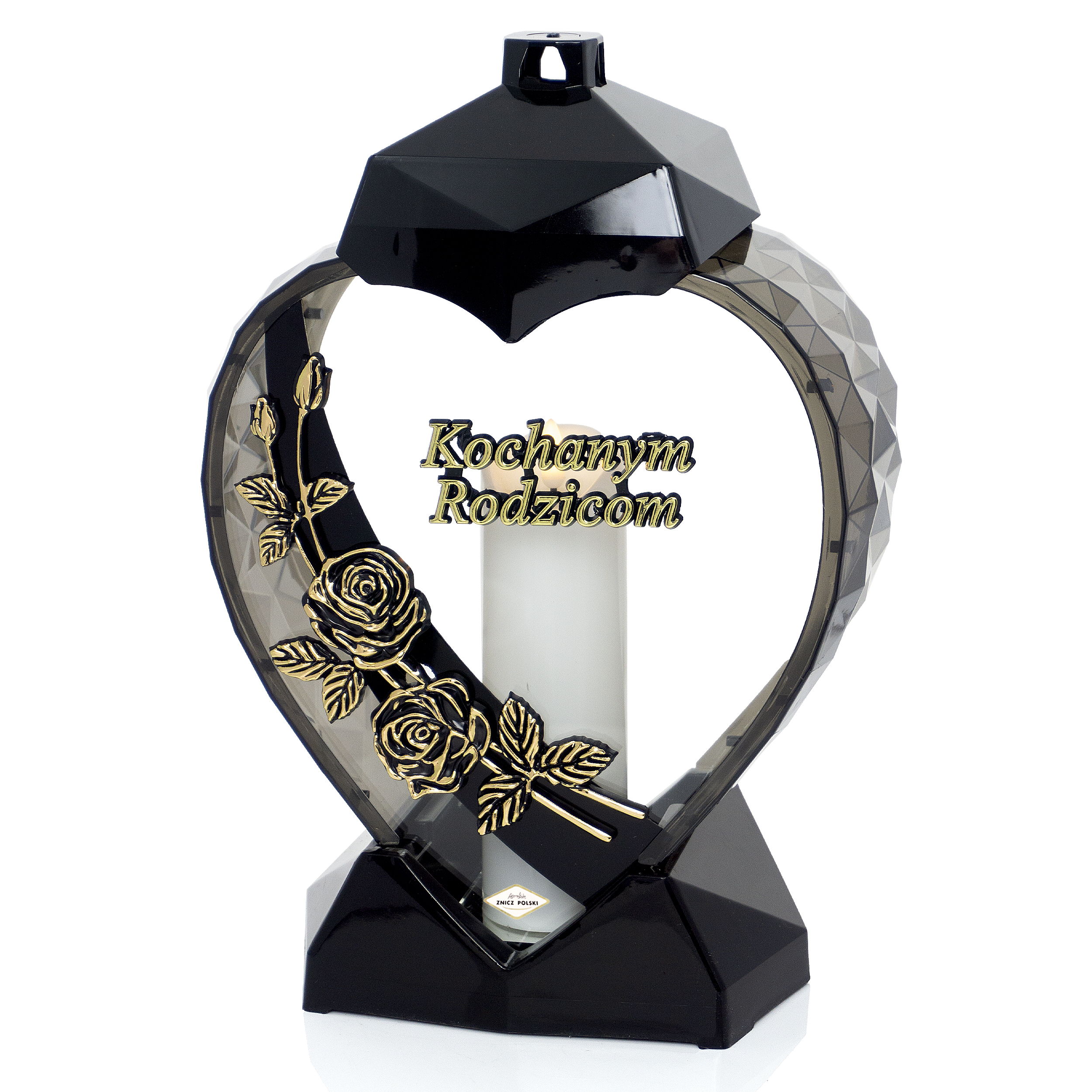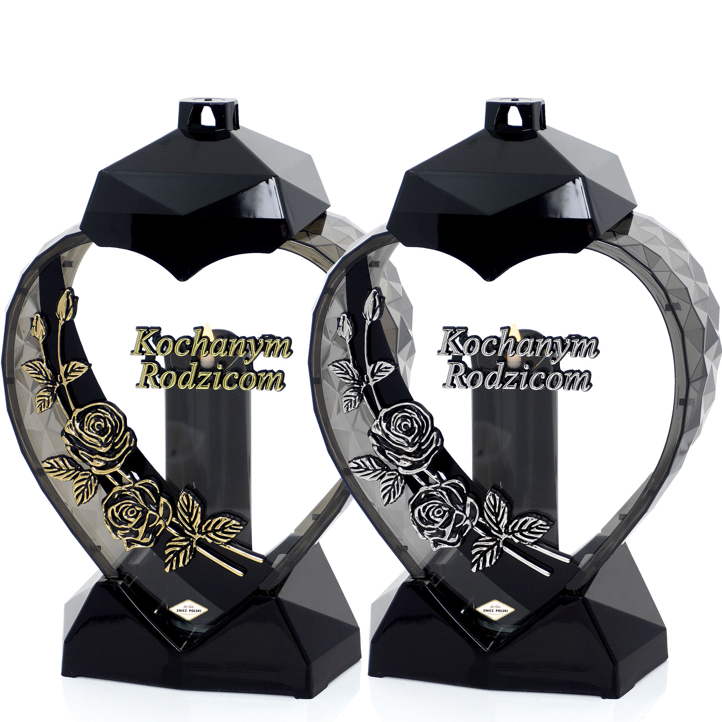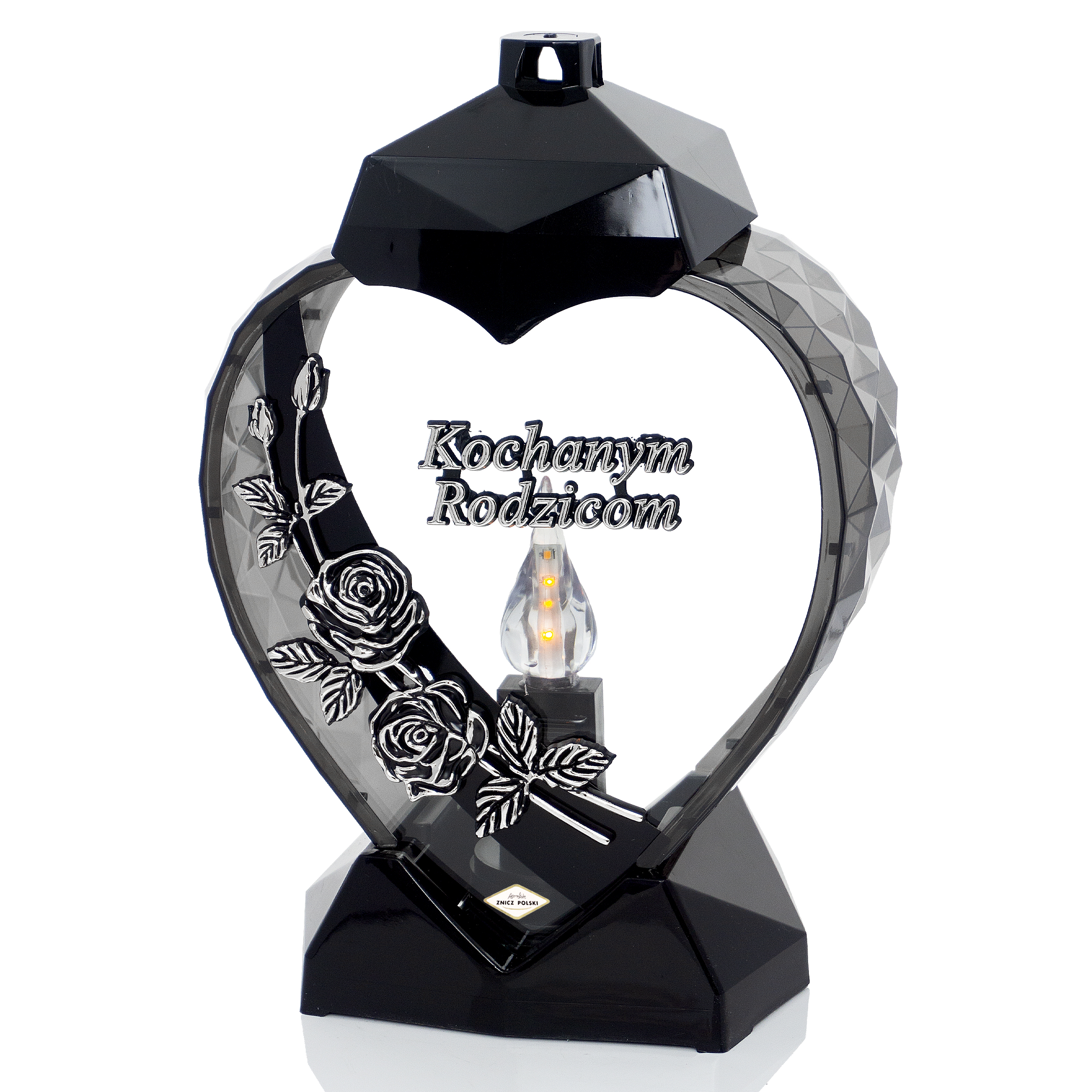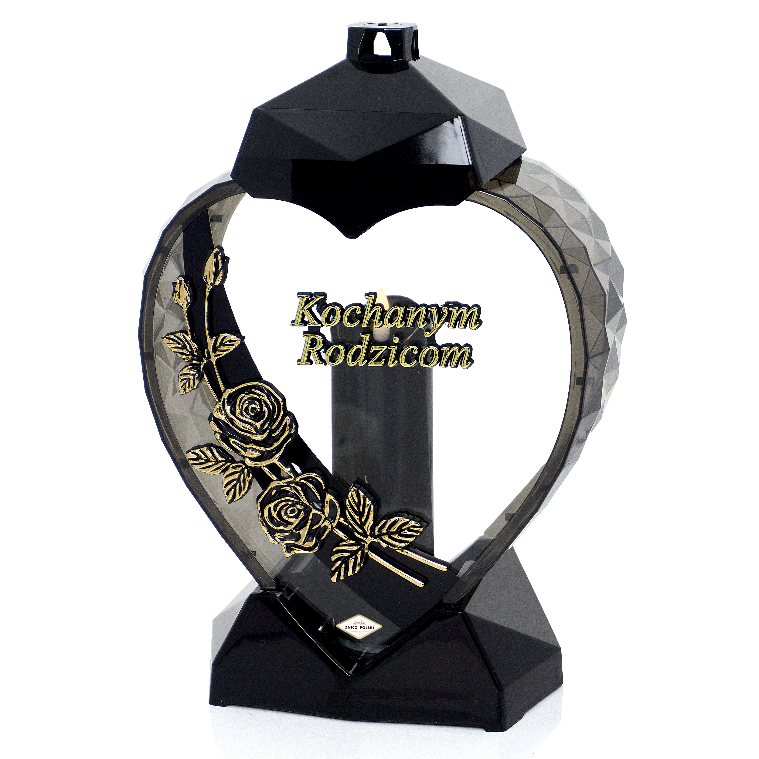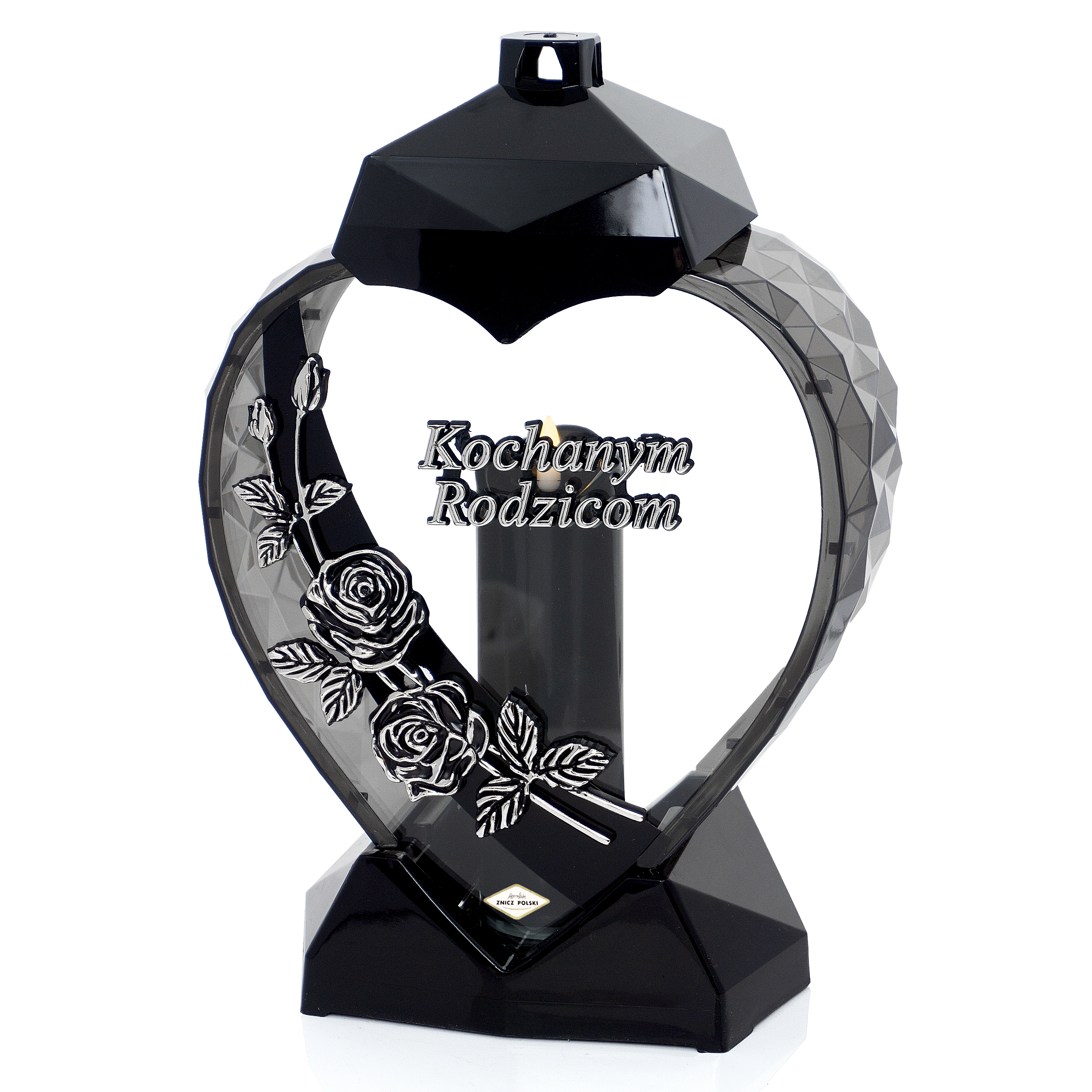 Elegancki znicz w kształcie serca z kwiatem róży dla rodziców