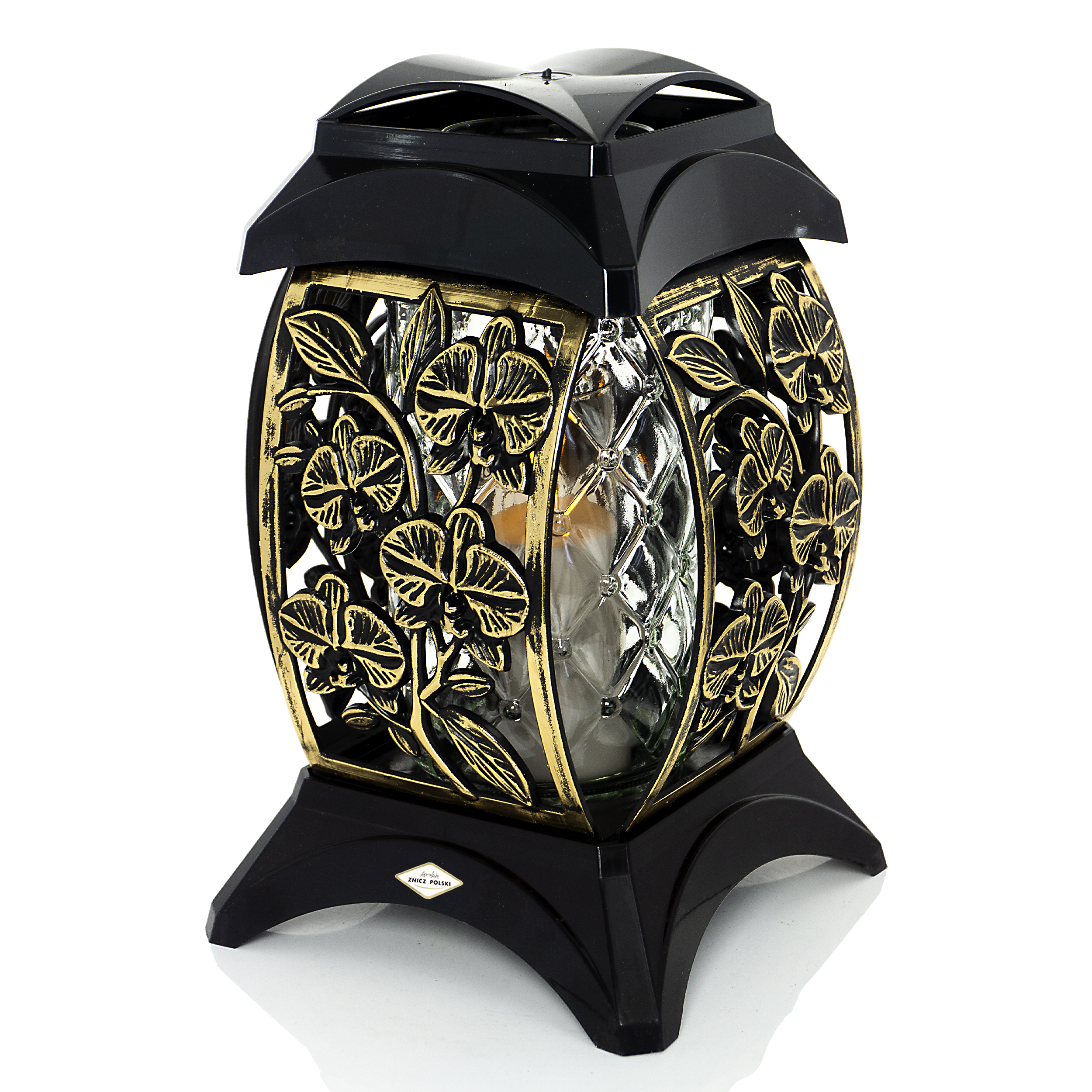 Kwadratowy znicz z ozdobnymi kwiatami orchidei w kolorze złotym lub srebrnym