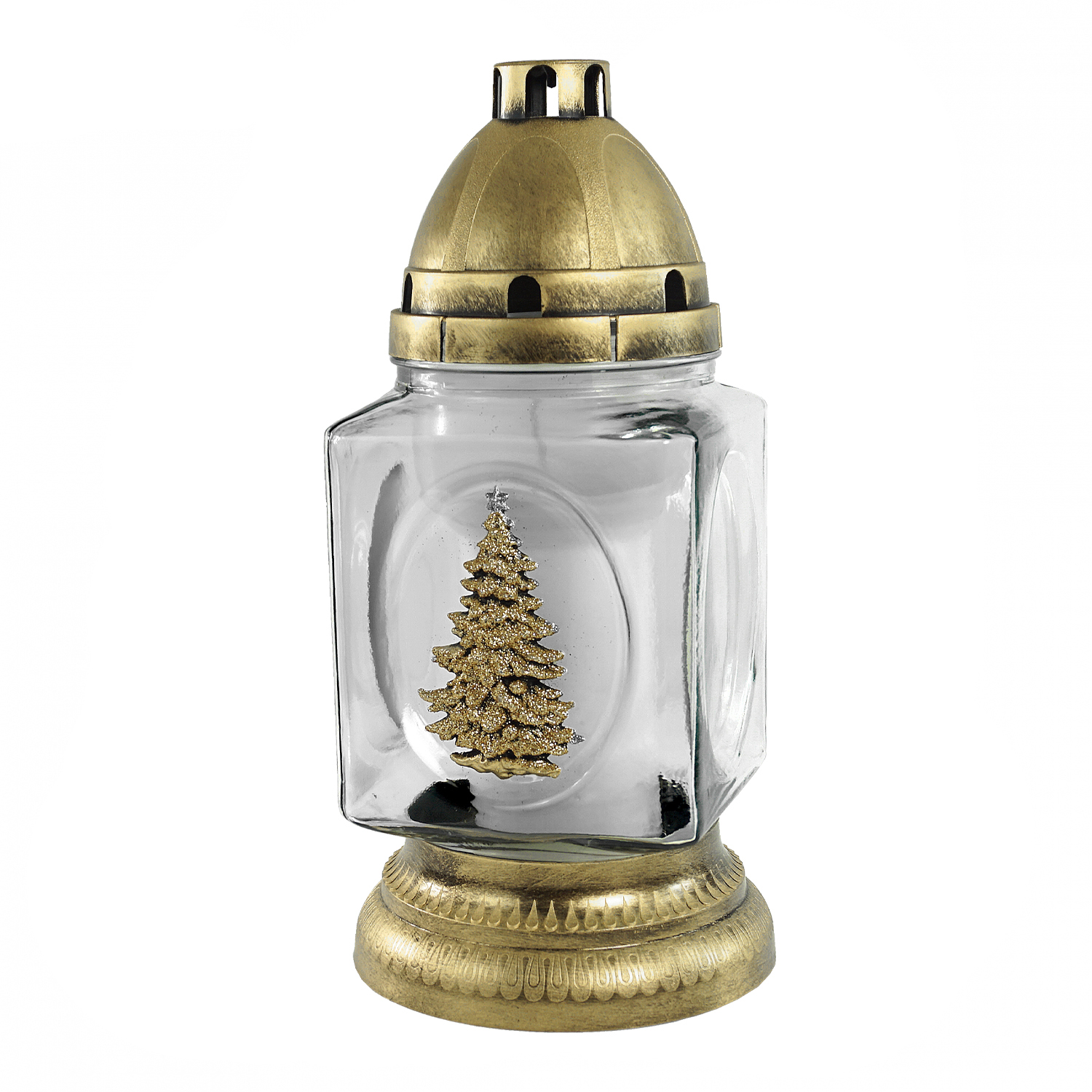 Prosty kwadratowy znicz z brokatową choinką KWD CH2