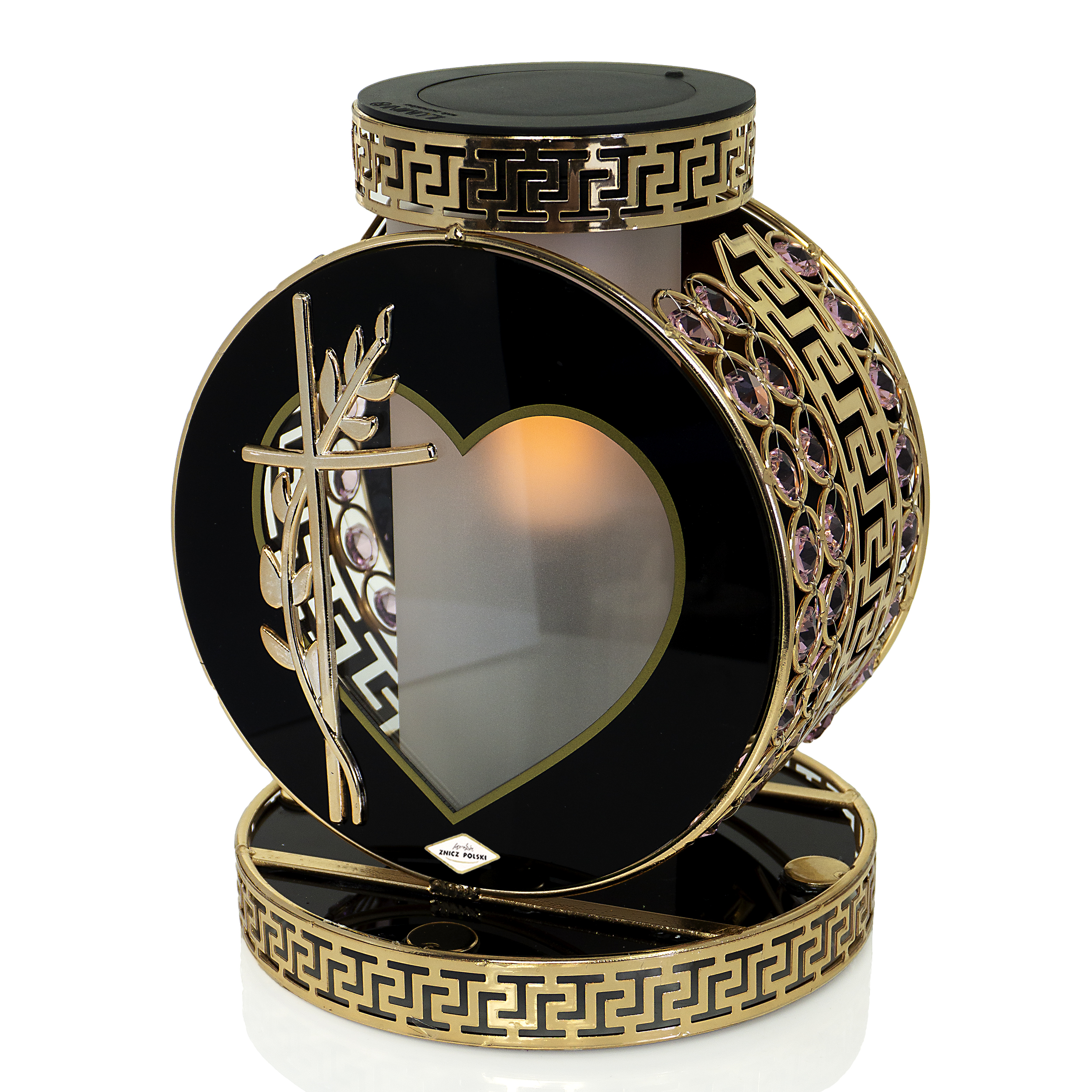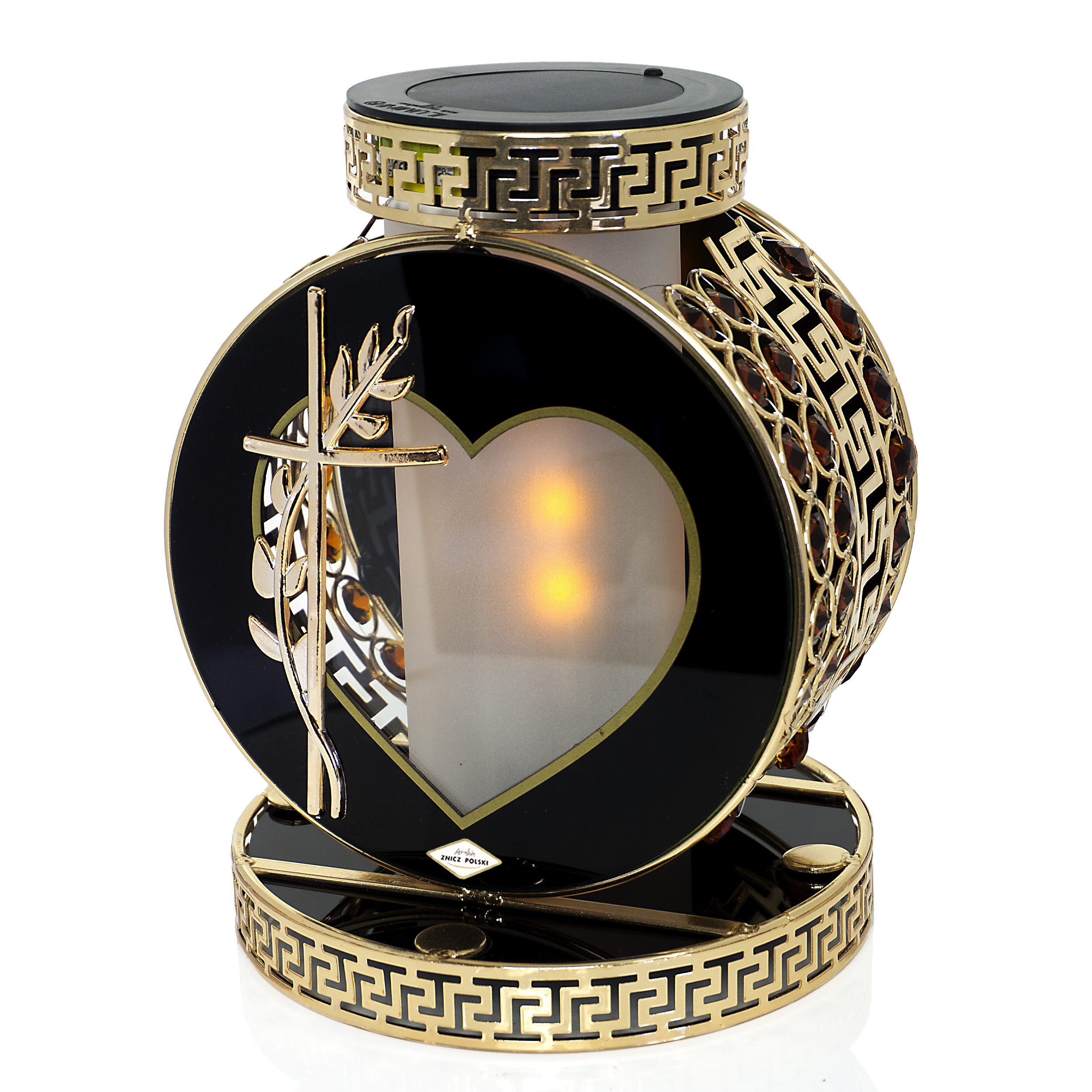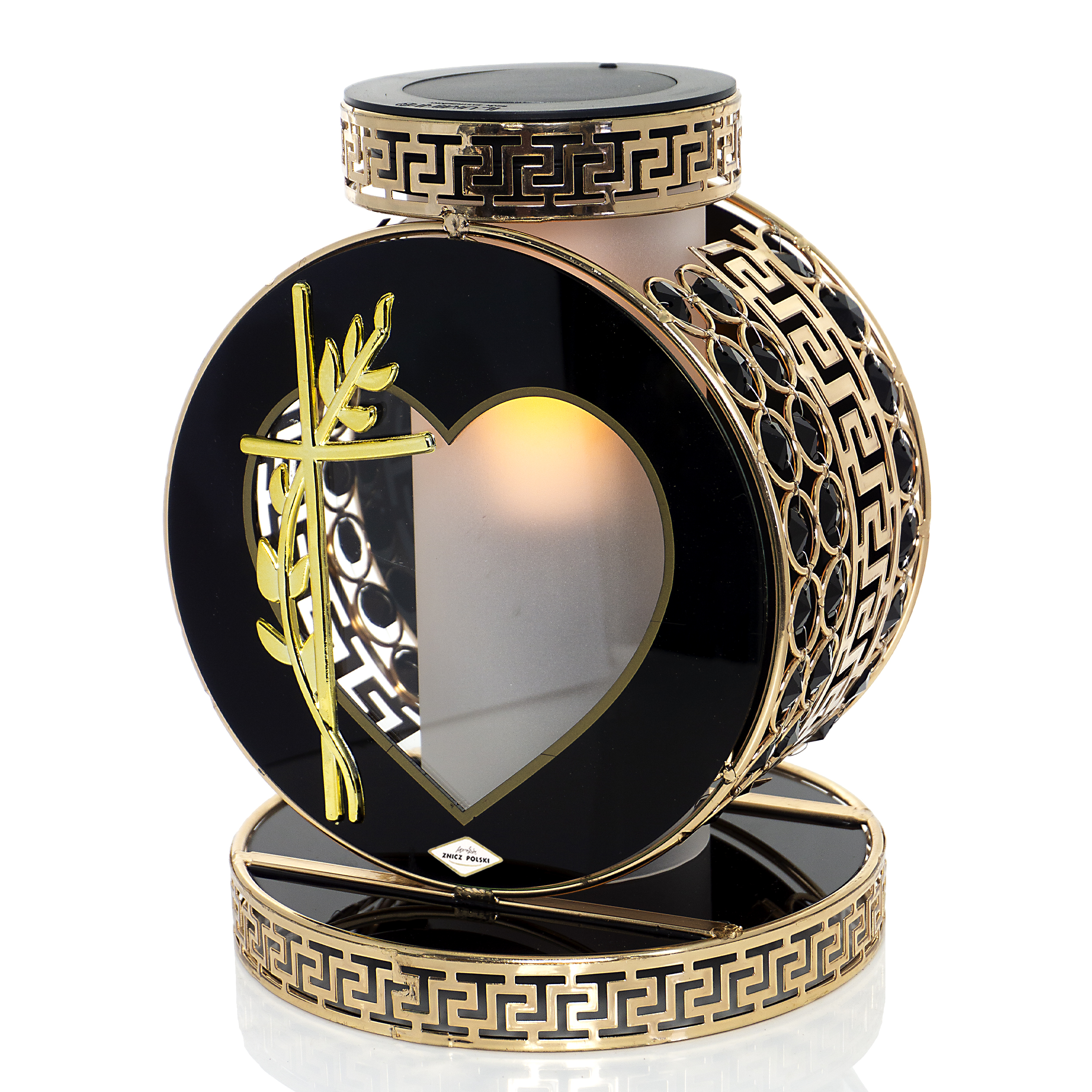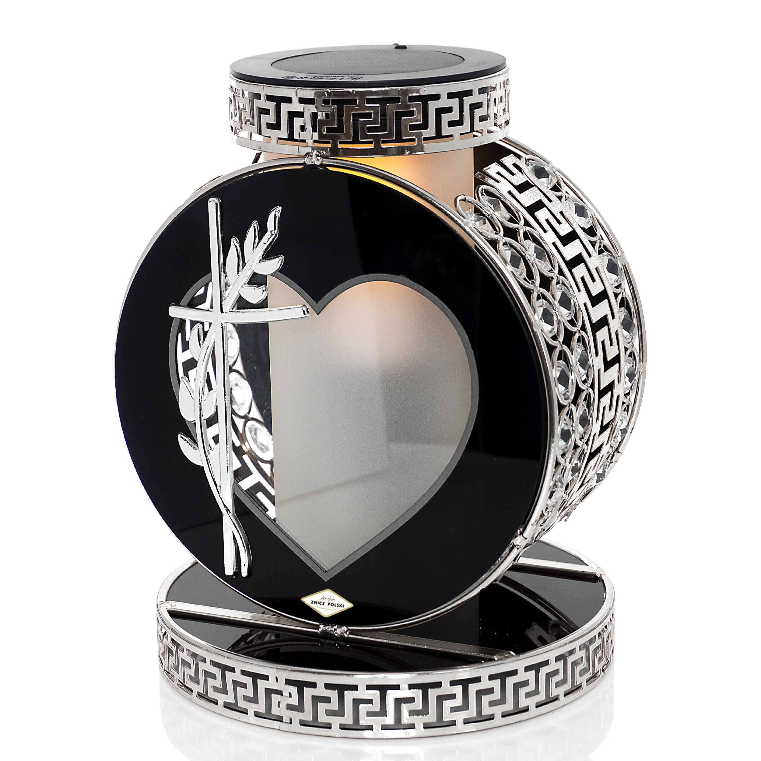 Wyjątkowy znicz solarny w formie koła i serca z kryształkami szkła NOWOŚĆ