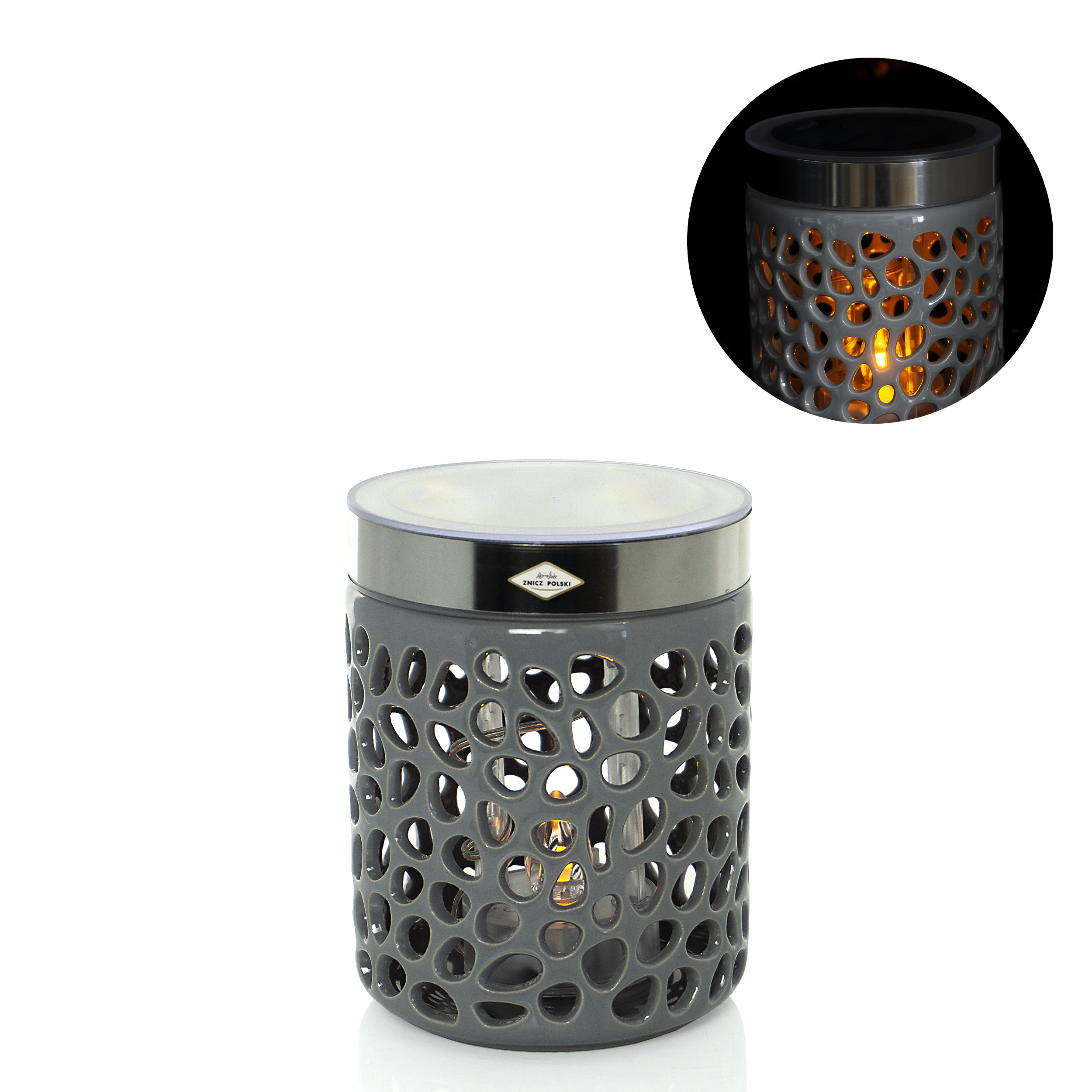Znicz LATARENKA SOLAR CERAMIKA SZARA