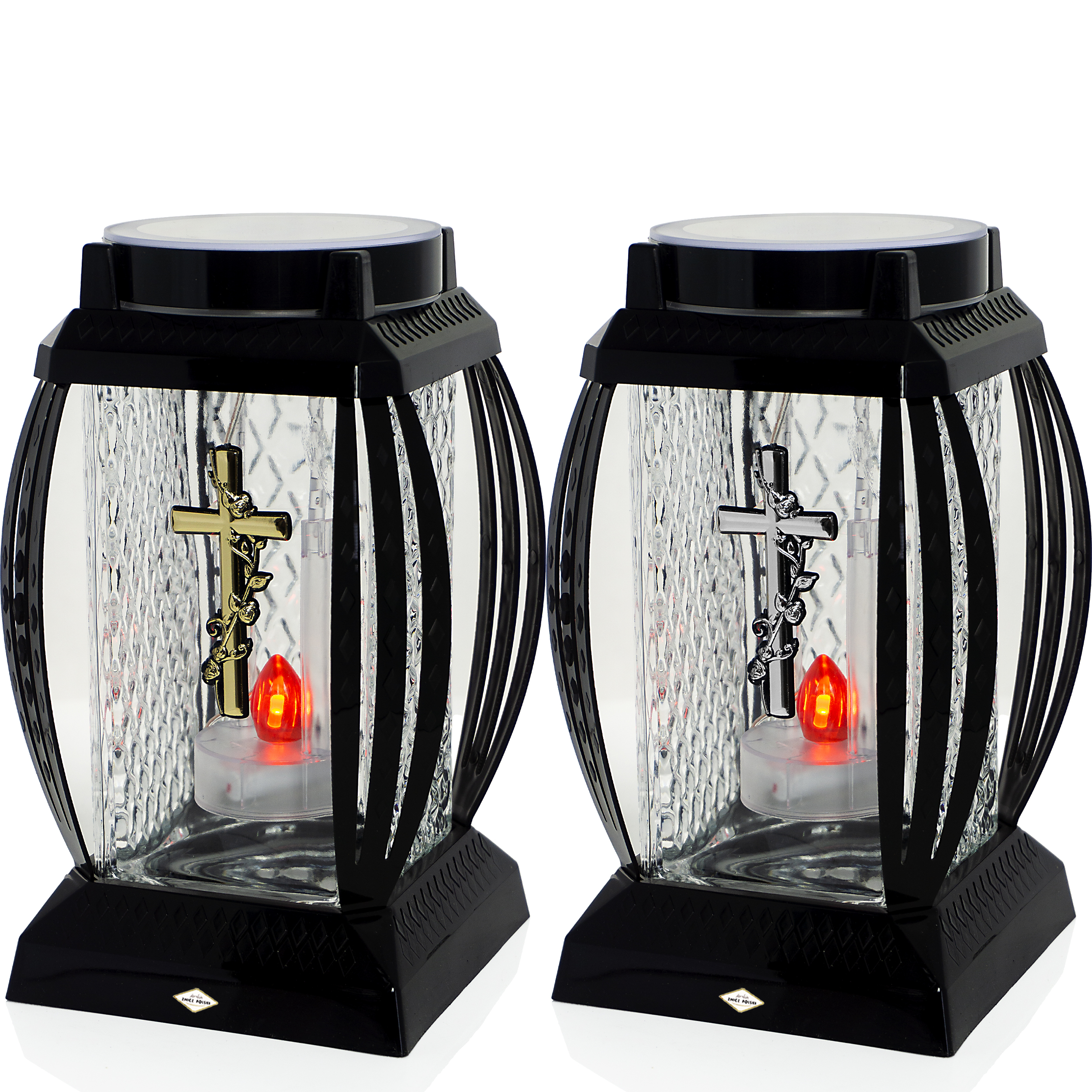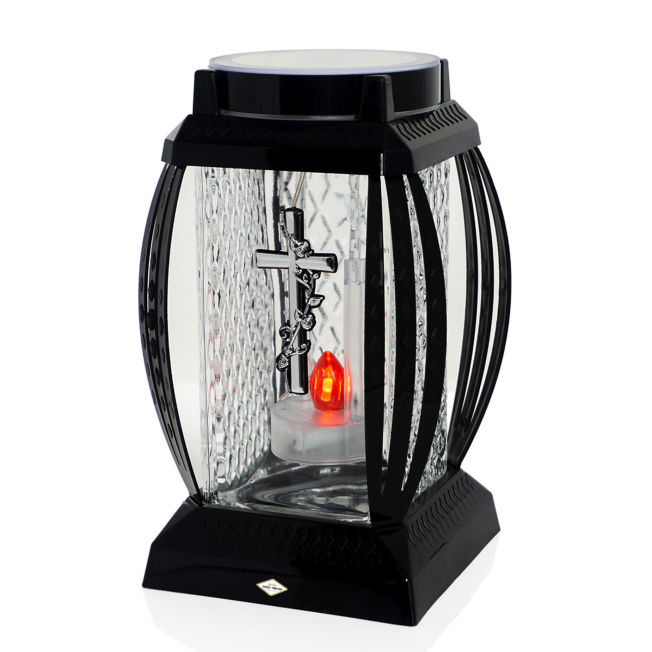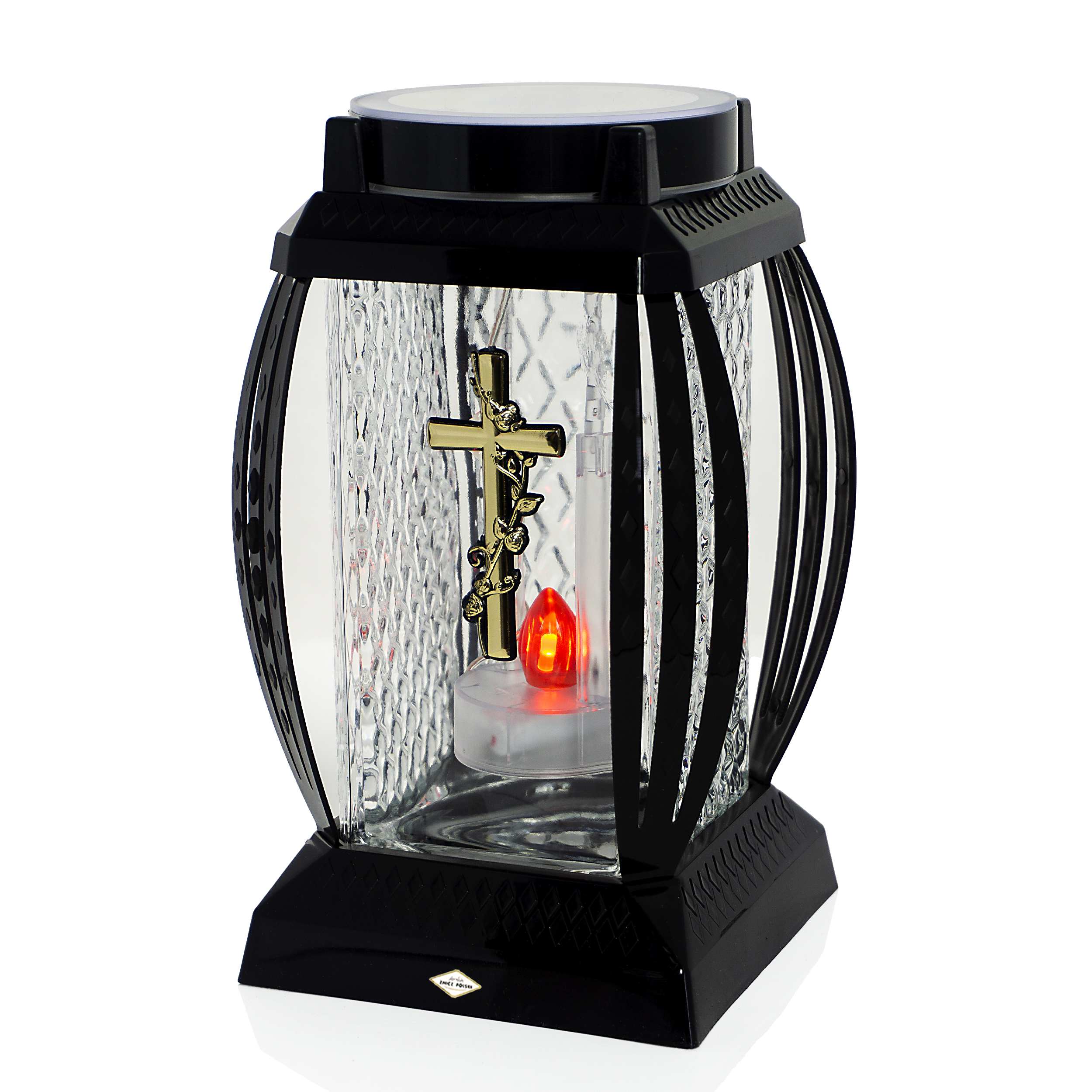 Znicz solarny z odozbnym krzyżem 25cm – złoty lub srebrny